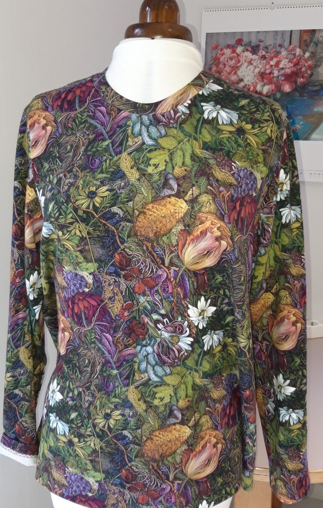 Der wunderschöne naturalistische Druck erinnert an die üppigen Blumenbilder flämischer und niederländischer Maler vergangener Jahrhunderte.