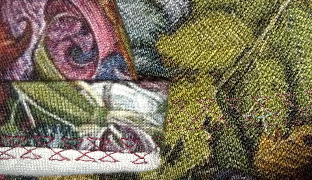 Ein Tipp zur Verarbeitung: Die Säume an Ärmel und Rumpf wurden mit einem Hexenstich mit der Nähmaschine gestickt. Eine schmückende Alternative zur Zwillingsnaht mittels Coverstich.