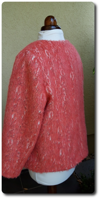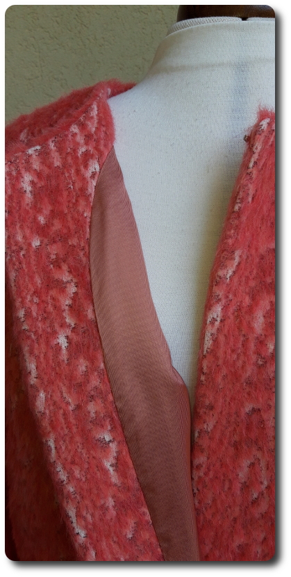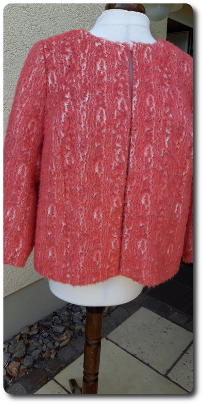 Bei dieser Jackenform gibt ganz klar das Material den Ton an. In ein festes Basisgewebe wurde aus feiner Mohairwolle ein „tierisches“ Muster eingewebt. Dadurch wirkt der Stoff voluminös, aber nicht schwer.